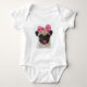 Chien Carlin avec la langue avec un ruban rose paillé, arrière - plan blanc.