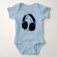 Conception adorable pour votre bébé de rock ! Une grande paire d'écouteurs entourés par les notes musicales bleues. En outre disponible dans le rose dans notre magasin.