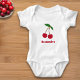 Un costume de bébé aux cerises rouges, ses feuilles verts et un texte personnalisable : un joli cadeau pour un nouveau-né !