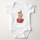 This absolutely darling illustration captures a moment of pure holiday joy! Cindy Lou Who, dressed sweetly in pink with her big red bow, is sitting happily atop a large, colorful Christmas present (red with a blue ribbon). Beside her sits her loyal friend, Max the Dog, looking cheerful and sporting his single reindeer antler! This heartwarming graphic perfectly celebrates friendship and the sweet excitement of Christmas morning.