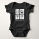 Manipulez avec soin ! Combinaison du Jersey de bébé. Image blanche et texte personnalisable sur l'arrière - plan foncé. Un cadeau frais et élégant à un nouveau bébé !