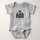 Ce maillot de bébé est présenté avec une impression festive Halloween Boo. Color Grey Customisez cet article ou achetez comme indiqué. Image stock