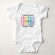 Share your good news in style with this customizable pregnancy announcement baby body suit. Featuring playful lettering in bright colors, fun typography that says, "Sweet Baby," and customizable text that says, "Coming Soon" plus the arrival date, this simple text design radiates sweetness and charm. This design allows you to modify the date plus additional text, making it perfect for celebrating a baby’s arrival, creating a memorable baby shower gift, or for sharing exciting news as a pregnancy announcement for grandparents-to-be. This design will make a delightful keepsake. Whether you’re welcoming a newborn or gifting a new mom, this charming bodysuit is sure to bring smiles all around.