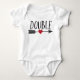 Double Trouble Twins Bodysuit - Habillez vos bébés jumeaux dans le style avec cette cheeky double trouble double maillot de corps jumeau. Imprimé à l'avant le mot "Double" et une flèche avec un coeur. Trouvez la combinaison avec le mot "Trouble" et la flèche inverse dans nos vêtements pour bébé pour la collection jumeaux. Le cadeau de baby shower idéal pour les futurs parents de jumeaux
