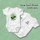 Un costume de bébé mignon avec un thème de football avant et arrière. Le design comporte des bottes de football et une balle sur un arrière - plan vert tendre à l'avant, avec une balle de football supplémentaire à l'arrière. Vous pouvez customiser la légende sur le devant du t-shirt qui dit "STAR DU FOOTBALL" en bleu. Ajoutez également votre nom préféré ou un autre texte au verso.