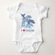 Jolie famille Dolphin pour une baignade. Bleu doux sur les tons bleus. Le texte dit que je coeur les dauphins.