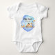 Ajoutez une touche spéciale au grand jour de votre petit garçon ou de votre fille avec ce costume personnalisé d'anniversaire à thème de la jungle pour bébé un morceau. Il y a un lion avec un chapeau haut, une girafe avec une cravate arc, et un éléphant avec un casquette de fête et des ballons. Tous les animaux de safari sont peints en aquarelle et sont assis sur un train. L'arrière - plan est d'une couleur bleue douce. Le texte peut être modifié selon vos besoins. En ce moment il dit "Animal de fête" et est suivi par un nom et un âge, et la date de célébration. Cette chemise de fête d'anniversaire personnalisée fait un joli ajout à votre événement thématique!