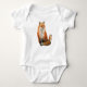 Une aquarelle sereine illustration d'un renard assis avec grâce avec un papillon délicat reposant sur sa queue. Ce design enchanteur reflète l'harmonie entre la nature et la faune, évoquant un sentiment de paix et de curiosité. Parfait pour les amateurs d'animaux des bois et de thèmes artistiques de la nature.