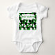 Ce bijou a une conception Bauhaus de triangles, cercles, rectangles et pentagons en noir et blanc sur un champ de vert.