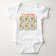 Ce maillot de bain a un design moderne du milieu du siècle de cercles concentriques en or, orange et turquoise sur un arrière - plan blanc.
