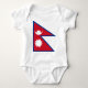 La frontière bleue symbolise la paix et l'harmonie qui a été répandue dans le pays depuis l'âge de Gautama Buddha, qui était né au Népal. Le rouge cramoisi est la couleur nationale du Népal, et il indique les spiritueux courageux des personnes népalaises. Les deux triangles symbolisent les montagnes de l'Himalaya et pourraient également représenter les deux religions, hindouisme et bouddhisme principaux. Le drapeau triangulaire rouge a été un symbole indou de victoire depuis l'époque de Ramayana et de Mahabharata. La description des corps célestes représente la permanence, l'espoir que le Népal durera tant que le soleil et la lune. La lune symbolise que le Népalais sont calmant et calme, alors que le soleil symbolise la résolution féroce. La lune symbolise également les nuances et le temps frais de l'Himalaya, tandis que le soleil symbolise la chaleur et la haute température à la partie plus inférieure (Tarai) du Népal. Une autre interprétation : La forme du drapeau symbolise une pagoda népalaise. La mise d'un miroir sur le côté du drapeau le plus proche du mât de drapeau produira d'une image d'une pagoda.