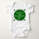 T-shirt ou vêtement une pièce d'amusement et de jour de premier St Patrick du bébé mignon pour le bébé, enfant en bas âge. Forme ovale de caractéristiques avec l'arrière - plan de Kelly et les un bon nombre verts de quatre shamrocks chanceux de trèfle de feuille. Texte personnalisé pour le nom ou l'expression de tout enfant. Grand pour un petit bébé ou fille le jour de patricks de saint ou n'importe quand. C'est grand vert de port le jour de St Patrick. Tout conçoit le © de Copyright www.CuteComfy.com 2013