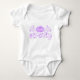 Conception pourpre de bébé de style de yoga. SÉRÉNITÉ dans la police de regard Sanskrit avec la conception florale et la fleur de lotus. Par www.YogaGlam.com
