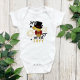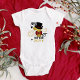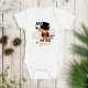 Mon premier nouvel an bébé garçon mignon or paillettes Body bébé une pièce présente le texte "Ma 1ère nouvelle année (ajouter année)" dans un script moderne avec des paillettes dorées accentuées d'étoiles, de feux d'artifice, d'un chapeau haut-de-forme et d'un nœud papillon à carreaux rouges. Evco Holidays www.zazzle.com/store/evcoholidays