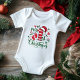 Ma première typographie de Noël mignonne Santa Hat Baby Girl Baby Boy Boy Boy Bodysuit le texte "Mon 1er Noël" dans la typographie de script moderne accentuée avec un chapeau de Père Noël, des empreintes saintes et des empreintes de bébé. Un cadeau de Noël parfait pour une petite fille ou un petit garçon. Créé par Evco Studio www.zazzle.com/store/evcostudio