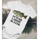 Un cadeau mignon pour le papa-à-être qui aime pêcher. Ce maillot de bébé de pêche est doté d'une basse géante à grande bouche avec le texte "Future Largie Slayer".