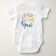 Ce body bébé mignon comporte un texte coloré sur le devant et le dos qui dit « Manger, Dormir, Caca, Répéter ». Modifiez le texte et les couleurs pour créer un cadeau de baby shower amusant et unisexe pour la famille, les amis ou les collègues.
