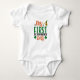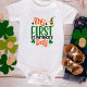 La première combinaison Jour de la Saint Patrick Gnome Baby Bodysuit est un petit ami mignon et câliné pour votre petit. Le design des caractéristiques du gnome vert est debout sur le mot First. La combinaison dit "Mon premier Jour de la Saint Patrick". Voyez le Jour de la Saint Patrick de maman pour faire correspondre les tee - shirts.