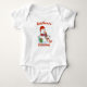 "Joie de Noël, personnalisée pour votre petit bonhomme : un bonhomme de neige mignon, présente beaucoup, et le nom de votre bébé font de cette combinaison de bébé la tenue parfaite pour un premier Noël magique." Customisez le dessin avec le nom du bébé. Utilisez le bouton "Personnaliser" pour modifier le texte.