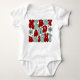 Noël Joyeux Et Lumineux Rétro Groovy Festif Body moderne pour bébé comporte le texte "Joyeux et Lumineux" en typographie manuscrite rouge et verte moderne et accentué d'étoiles et de fleurs. Parfait pour le premier Noël de bébé, la baby shower ou le cadeau pour les fêtes. Conçu par ©Evco Holidays www.zazzle.com/store/evcoholidays