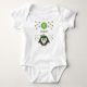Personnalisez ce mignon costume de bébé pingouin avec un nom et une initiale. Conçu avec des étoiles vertes et jaunes. Idée cadeau pour un nouveau bébé.