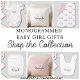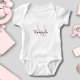 Ce bodysuit pour bébé fille présente un monogramme élégant et un nom en noir et rose pâle. Facilement personnalisable.