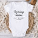 Nouveau bébé Faire-part de grossesse Bodysuit de bébé Vous cherchez une façon unique d'annoncer votre grossesse? Ce costume mignon et moderne pour bébé est une façon amusante de révéler votre grossesse à vos parents et à vos enfants. Customisez cette combinaison avec votre nom de famille ou le prénom du nouveau bébé et son mois et son année de naissance.