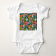 Ce costume de bébé a un design de Noël d'un mélange de divers ornements dans de nombreuses couleurs.