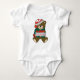 L'ours de nounours de Joyeux Noël avec le T-shirt personnalisé par présent montre un ours de nounours mignon avec un casquette rouge et par blanc tricoté, une écharpe verte et des mitaines vertes et un cadeau qui est blanc avec un grand arc rouge et les mots "Joyeux Noël." Ce ne doit pas être une chemise juste pour Noël si vous personnalisez le texte avec des mots que vous préférez. Vous pouvez customiser ce cadeau en changeant le texte ou l'image aussi bien que le style et la couleur du T-shirt, de la barboteuse, ou de la combinaison. Habillez votre petit dans la joie de Noël.
