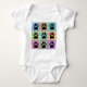 Une courtepointe motif de chien colorée. Des rayures et des carrés dans de nombreuses couleurs. Toutes les images numériques. Costumes personnalisés pour bébés. Idée cadeau.