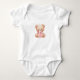 Créez votre propre costume pour bébé. L'avant est orné d'un joli ours en peluche portant un arc rose et un coeur pour votre monogramme désiré. Le dos est fait de coeurs affectueux. Créez cette pièce pour votre petite fille. Une partie de la collection Teddy Bear Pink Design. Utilisez le modèle pour créer votre propre maillot de bébé.