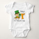 Le design mignon de la première St. Patrick du bébé. Il présente un dessin animé, un bébé habillé d'une tenue irlandaise avec un shamrock vert. Célébrez la toute première St. Patrick's Day de votre fils avec ce design mignon.