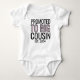 Ce dessin particulier présente un dicton mignon imprimé sur le devant qui dit "Promu au grand cousin." Le texte est susceptible d'être dans une police ludique et enfantine qui ajoute à la nature légère et joyeuse du message. L'expression "promu au grand cousin" suggère que le bébé a un nouveau membre de la famille, un cousin plus jeune, et célèbre l'excitation et la responsabilité de ce nouveau rôle. La conception est susceptible d'attirer les parents ou les aidants naturels qui ont une famille en expansion et qui souhaitent reconnaître les étapes importantes et les transitions qui en résultent. Le message est amusant et attachant, soulignant le lien spécial entre les cousins et la joie qui vient avec l'accueil d'un nouveau membre dans la famille.