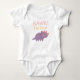 Un petit tee-shirt avec un mignon triceratops de violet dinosaure avec de grands yeux ronds et des cornes roses sur la tête. Le texte original et humoristique dit "Rawr ! I'm One ! qui utilise le son rugissant du dinosaure pour attirer l'attention et annoncer que le bébé en tourne un ! C'est un cadeau d'anniversaire pour les petites filles qui en font un.