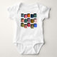 Ce bijou a un design Bauhaus de rectangles avec des motifs à l'intérieur et leurs ombres derrière.