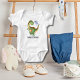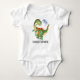 Ce costume corporel mignon pour garçons présente un dinosaure vert et orange avec un texte qui dit "ROAR". Personnalisez ce produit avec le nom de votre choix. La police et le texte sont également personnalisables.