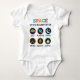 Playful space themed artwork made for curious kids and young students. Cute symbols like UFO, planet, moon, stars, rocket and alien help children explore space science and basic astronomy in a fun and friendly way.