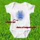 Un joli costume pour bébé pour un golfeur. Le design a traversé des clubs de golf et deux balles de golf sur un arrière - plan bleu. Vous pouvez customiser la légende qui dit "Star golfer" dans le texte bleu correspondant.