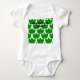 Ce costume de bébé a un design scandinave de trios feuilles se répétant à travers le design dans trois nuances de vert.