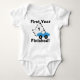 Voiture de course bleue amusante avec un drapeau de dames. Customisez avec votre texte favori ou laissez tel quel. "Première année terminée"
