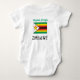 The Zimbabwean Flag with the word ZIMBABWE below in black letters. The flag is red, gold, green, black and white. A place to add baby's name to this bodysuit allows you to give it a personalized touch or create a customized gift. Fun for baby to wear to a family reunion.