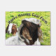 In diesem freskoartigen Gemälde eines Boer Bucks, das sein kniffliges Selbst ist - und ein hübscher Boer im Hintergrund beim Beobachten - steht "Happy Hooves Goat Farm" (Sie können diesen Willkommenstext ändern) Boer Goat Lovers Welcome Mat - ideal für Ziegenschauen