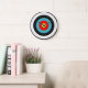 Uhr mit einem Bogenschiessen-Ziel mit konzentrischen Ringen aus Gold, Rot, Blau, Schwarz und Weiß. Personalisierbar. Eine tolle Uhr für die Sportbegeisterten in Ihrem Leben.