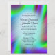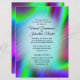 Design multicolore unique avec accent sur le bleu. Mets les prénoms du couple d'un côté. Ajoutez toutes les informations, y compris quand et où se trouve la cérémonie et l'heure et le lieu de la réception. Lors de vos invitations, veuillez triple vérifier toutes vos orthographes et dates.