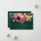 Hübsche bohemianische Blume, Federn und botanisches Blattwerk in Bordeaux-, lila-, Crème-, Gelb-, Pfirsich-, Rosa- und Grüntönen, Wedding Save the Date Card. Hintergründe, in dunklem Smaragdgrün dargestellt, können angepasst werden.