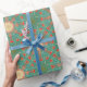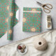 Dieser böhmische Zauber druckte Gold, Türkis, Grün, Weiß, inspirierte Geschenkverpackung des Pfirsiches und der Korallenschablone ist Kunst für jede Anlässe perfekt, wenn Chic und schöne Geschenkverpackung gewünscht wird. Die glänzenden goldenen Details und weichen die Sprühfarberänder geben dieses zeitgenössische, bunte Muster ein modernes, Stadt, städtische Kunst und weiblichen Rand. Der verwickelte, ausführliche Entwurf ist mittelgroß und in einer diagonalen Orientierung ausgebreitet und schafft Kreuze und Sternexplosionen. Das hübsche Muster ist von den klassischen Architekturspalten und von verwegener weiblicher Art erinnernd.