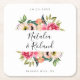 Elegante Aquarellfarben böhmische Blumen und Blattwerk, personalisierter Untersetzer aus Papier. Moderne Designvorlage liefert Zeilen für Namen, Ereignisdatum und Speicherort.
