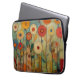 Ein lebendiges, abstraktes Kunstwerk mit skurrilen, mehrfarbigen Blume mit kreisförmigen Zentren vor blauem und gelbem Hintergrund, das einen fröhlichen Retro-Stil verkörpert. Hinweis: Für benutzerdefinierte Anfragen schreiben Sie mir an daed.halabi@gmail.com. 😊