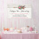 Bohemische Federbogen und Rose auf rustikalem Weiß Banner