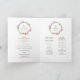 Doppelseitig vorgeklappte, einfache Böhmische Federn und Perlen farbenfrohe Aquarellkunst auf einem weißen Hintergrund Hochzeitsprogramme. Bearbeiten Sie diese Hochzeitsprogramme mit Ihrem eigenen Namen, Terminen, Zeremoniell, Begleitern von Hochzeitsfeiern und vielen Dank. Einfaches und dennoch elegantes Programm ersetzt einfach den Sample-Text durch Ihre Hochzeitsinformationen. Moderne boho Stammesfedern und Perlen Hochzeitsfeier. © Original Aquarellmalerei und Design von Sarah Trett. www.sarahtrett.com für www.mylittleedenweddings.com